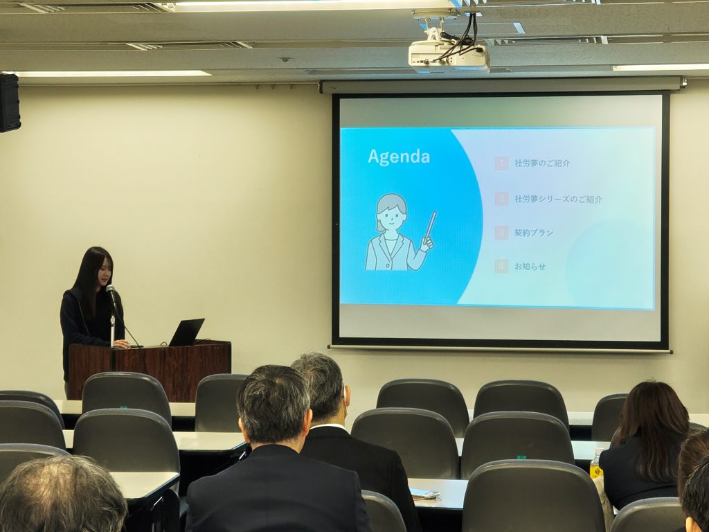 各ベンダー20分程の紹介する時間をいただき、社労夢の概要・機能などを説明しました。また別部屋でブース出展も行い、開業間もない方やクラウド化を検討している方等、様々な方が立ち寄っていただき、状況に合わせた提案を行いました。開催にご尽力いただいた県会委員の先生方をはじめ関係者皆様に改めて御礼申し上げます。