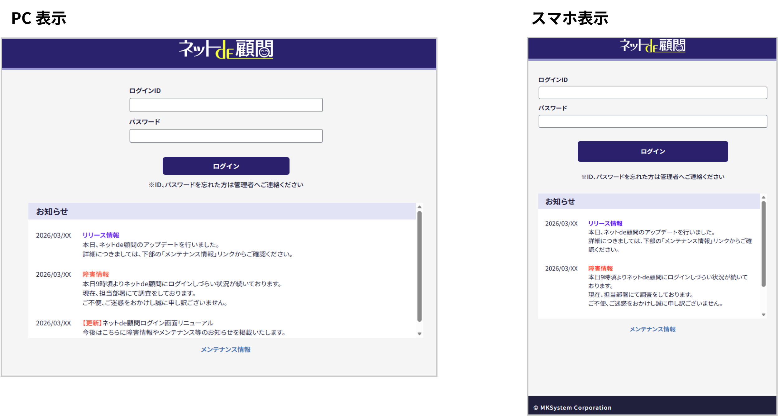 今回のリリースからネットde顧問のログイン画面も新しくなります。