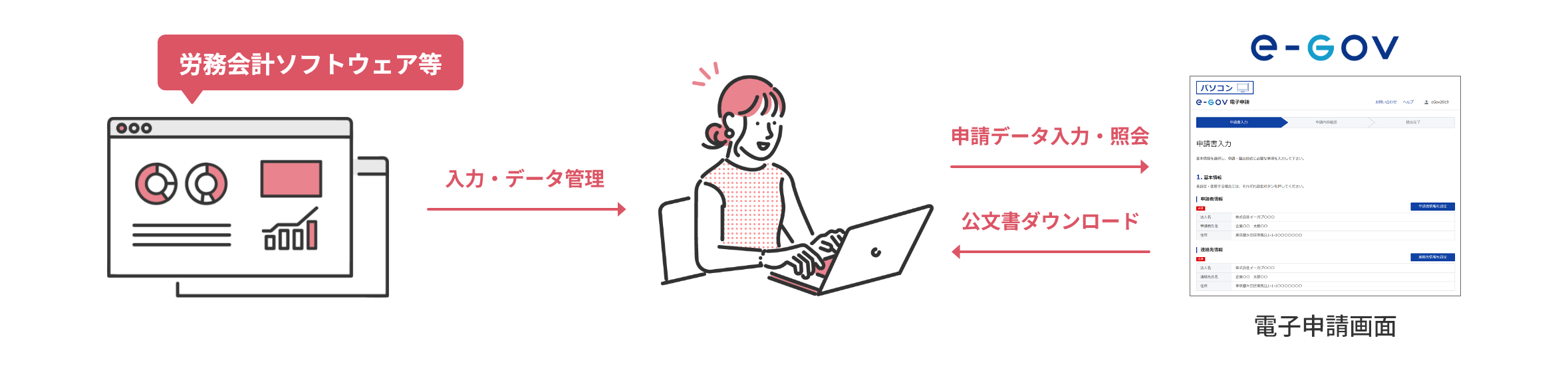 e-Gov電子申請は24時間365日利用可能ですが、1件ずつの手作業が必要なため、申請数が多いと業務負担が増えてしまいます。