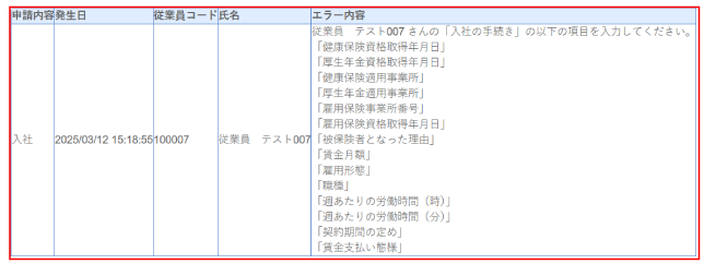 申請でエラーがあった場合、該当の手続きに「エラー」のリンクが表示されます。
