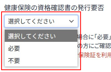 プルダウンから「必要」「不要」を選択して登録します。未選択のままでも登録可能です。