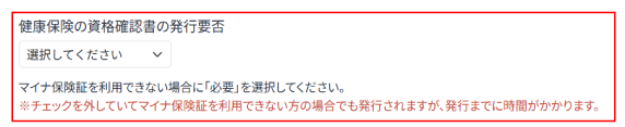 画面に「健康保険の資格確認書の発行要否」の項目を追加します。