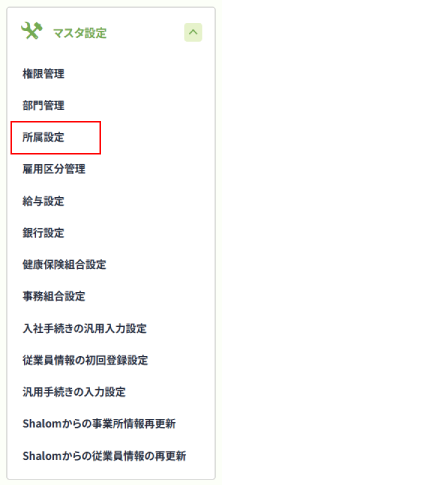 ※ShalomとDirectHRの所属マスタ情報は、事業所情報の再連携にてShalomからDirectHRに連携します。DirectHRのみに登録されている所属マスタは同期できませんので、Shalomで登録して連携・同期してください。