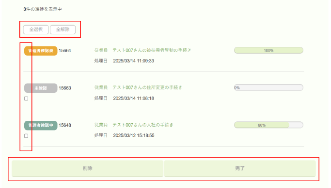 ・「手続き入力依頼」で手続きの進捗率が100%となった場合。