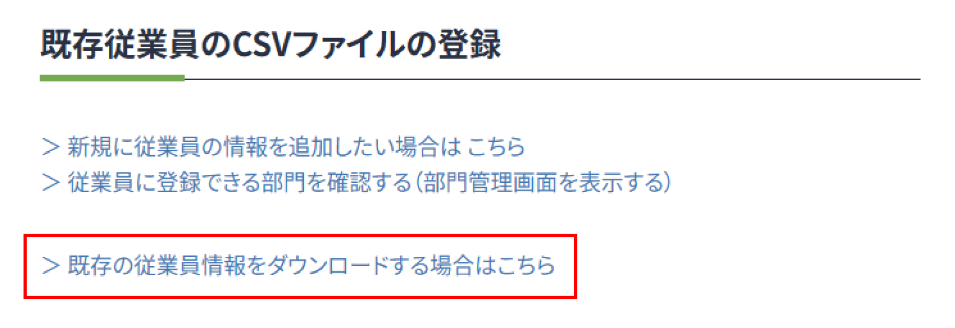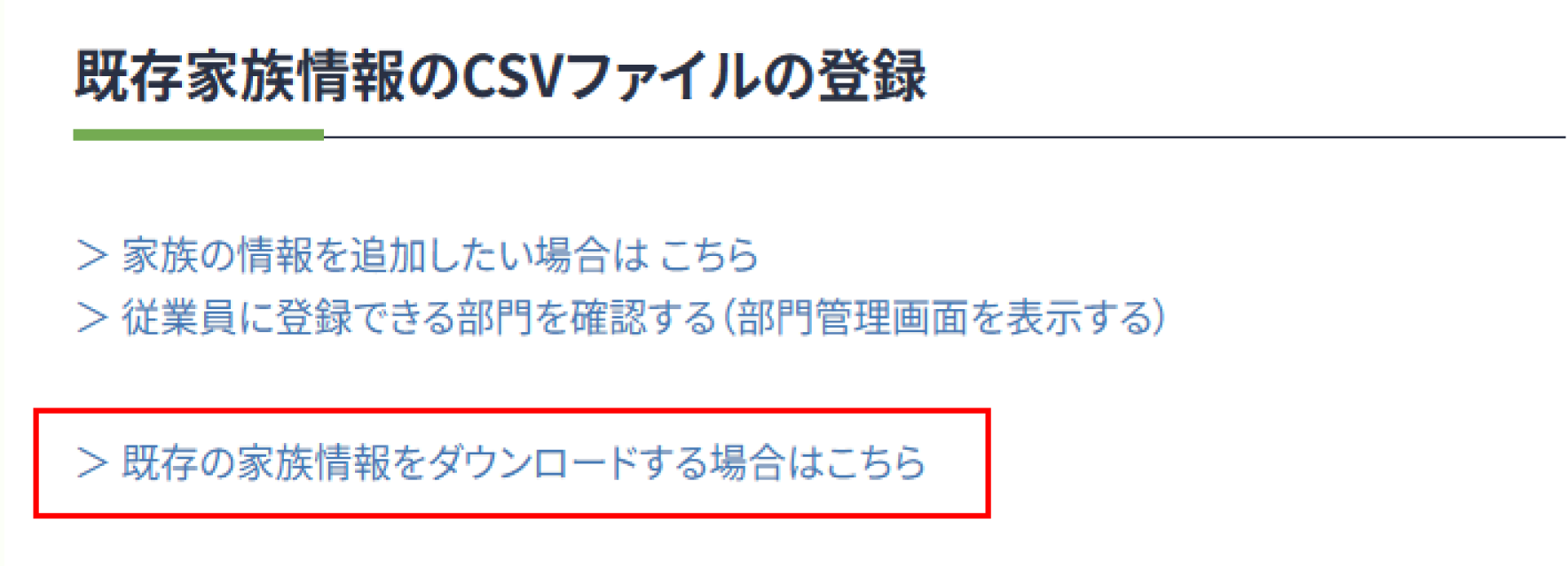 ○従業員情報の更新(CSV取込)と家族情報の更新(CSV取込)のCSV出力は取込画面内で出力するようになっていました。