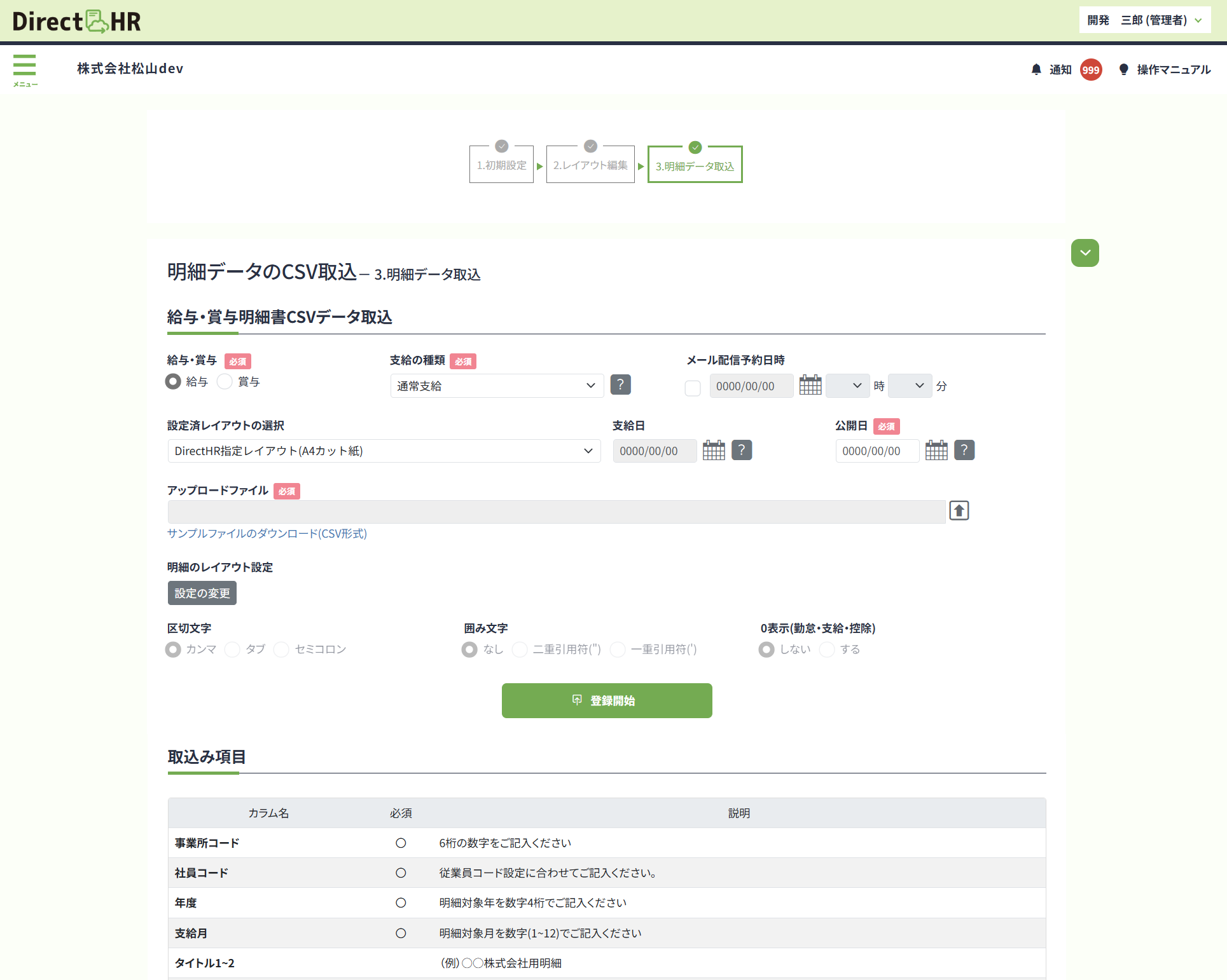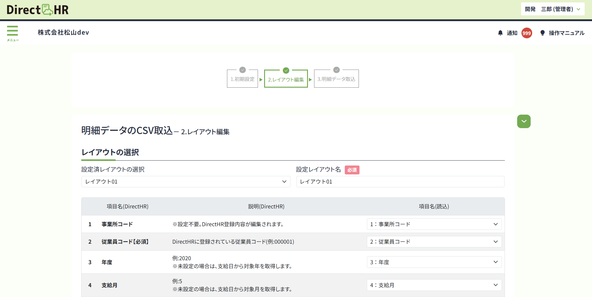 ◻︎給与・賞与明細書CSVレイアウト初期設定