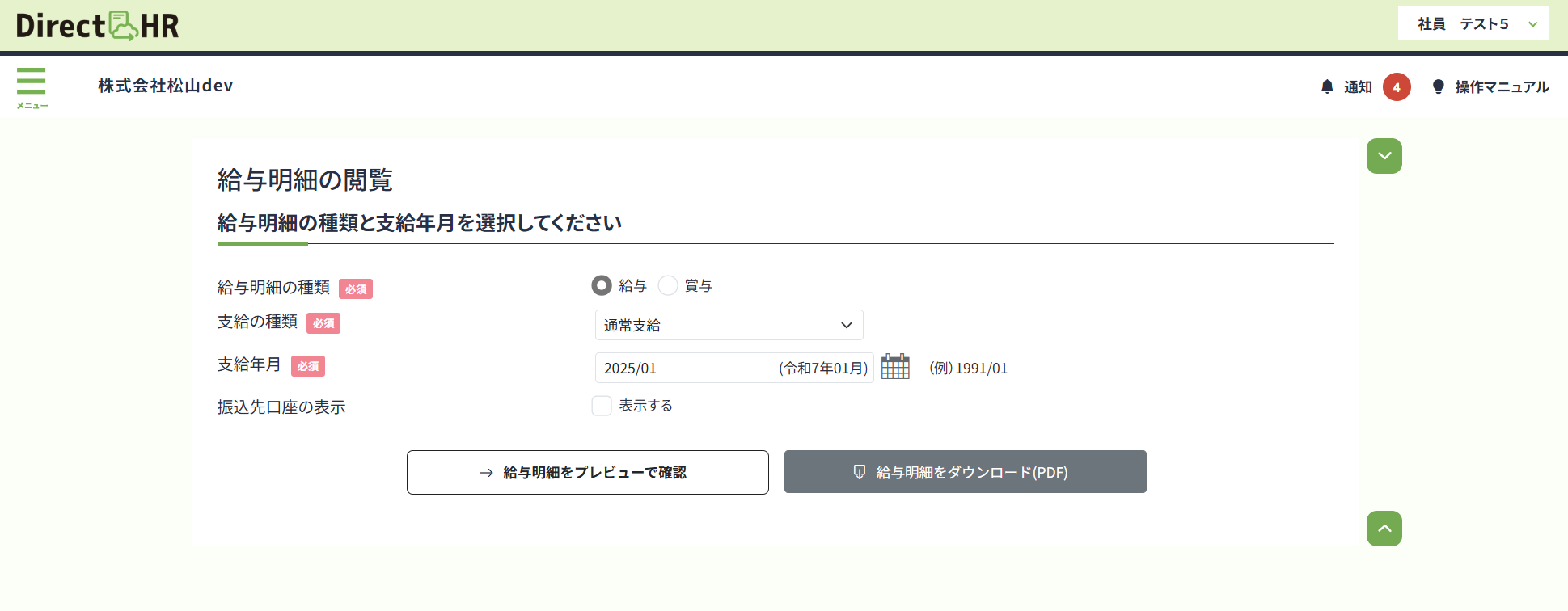 ◻︎給与明細の閲覧(従業員)