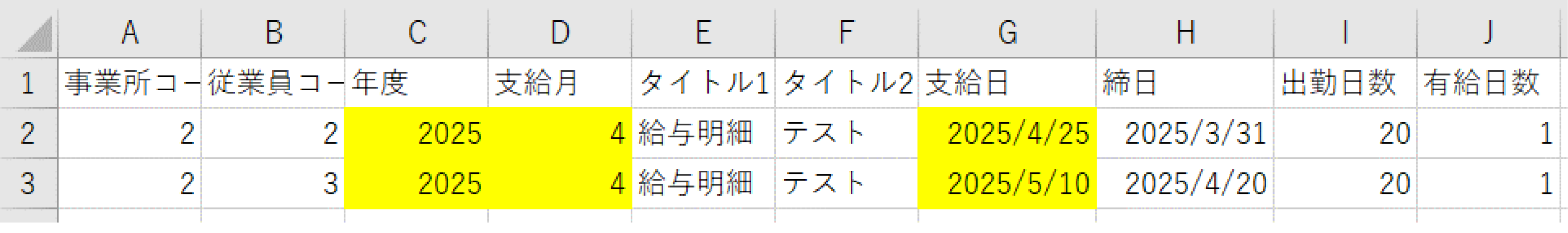 「年度」「支給月」は同じですが「支給日」が異なるデータを取り込みます。