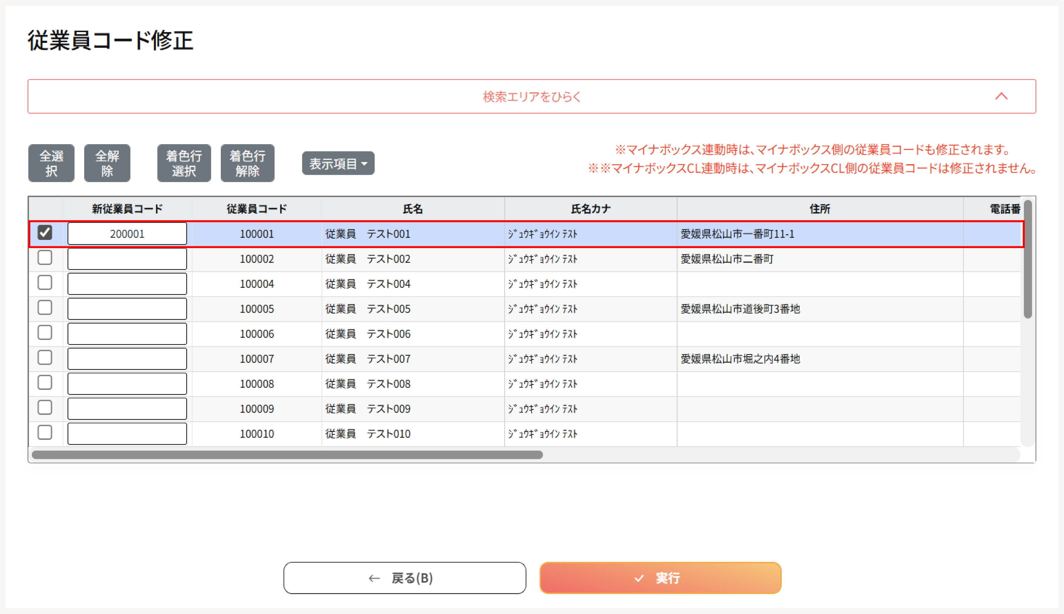 ○社労夢の「従業員コード修正」機能で修正を行った際に、DirectHRの従業員コードもあわせて修正するように改善します。