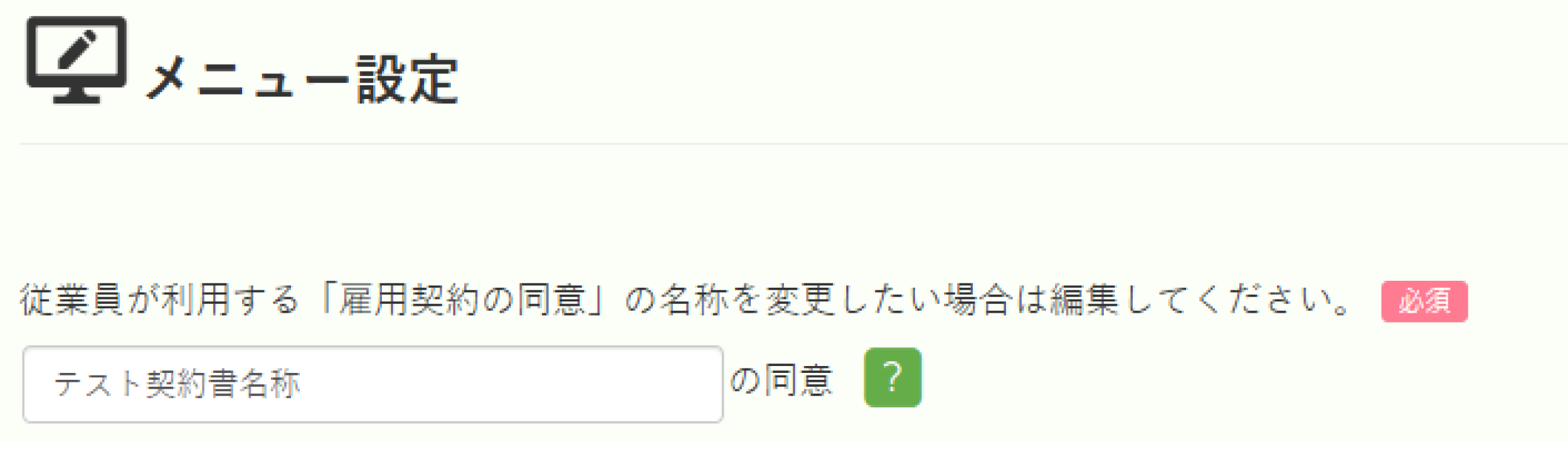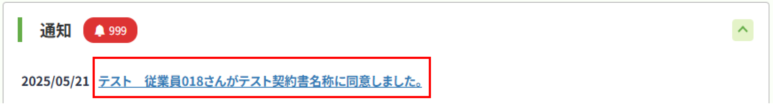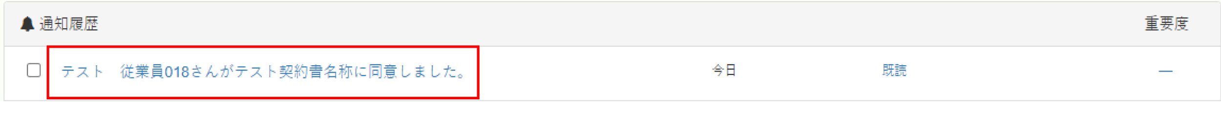 ○雇用契約の配信・同意に関して、名称変更してる場合も通知では「雇用契約書に同意しました」と表示されていました。そのため、名称変更している場合は、設定した名称に変更するように改善します。