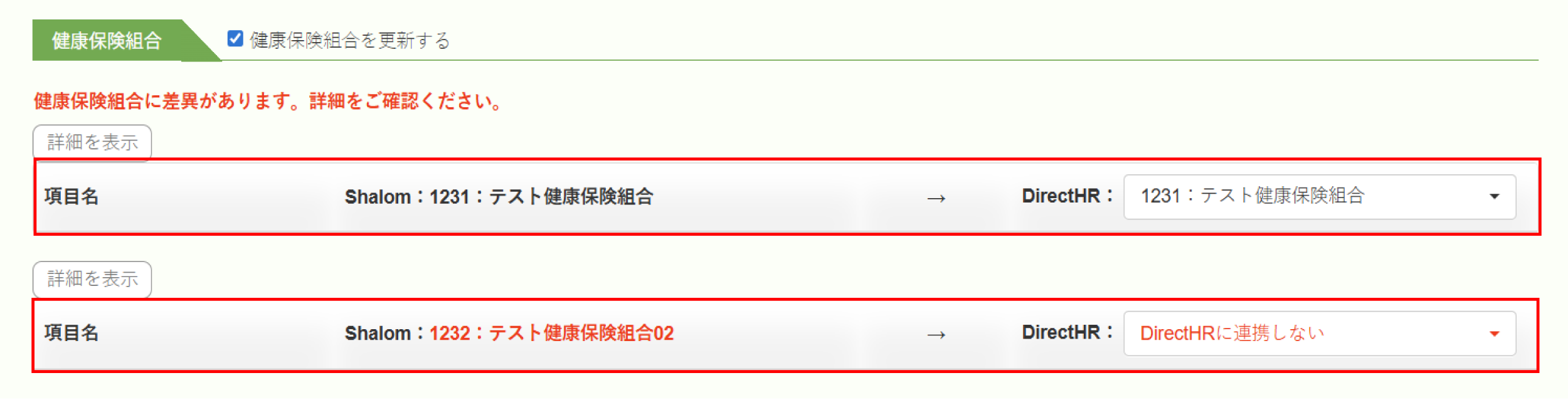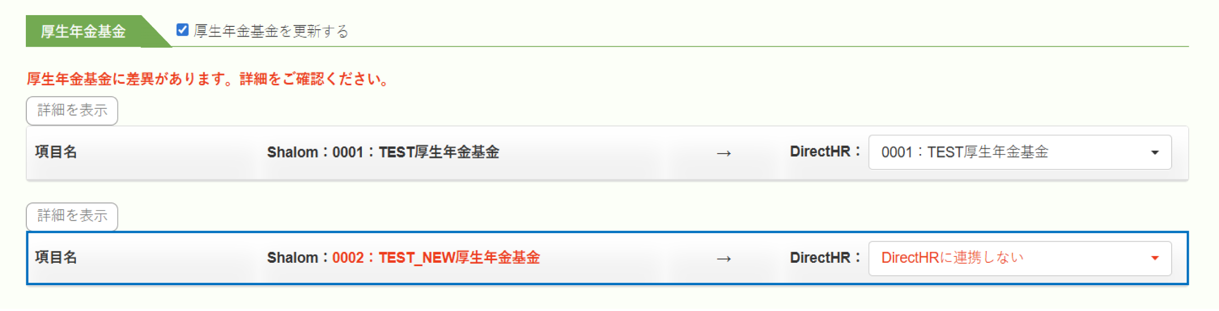 社労夢で利用している情報は取り込みが行われ、利用していない情報は「DirectHRに連携しない」が表示されるようになります。