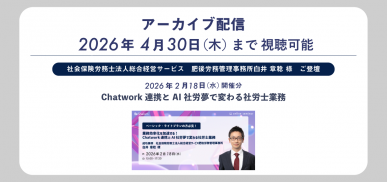 【アーカイブ動画】業務効率化を加速する!Chatwork連携とAI社労夢で変わる社労士業務 成功事例:社会保険労務士法人総合経営サービス 肥後労務管理事務所 白井 章稔 様