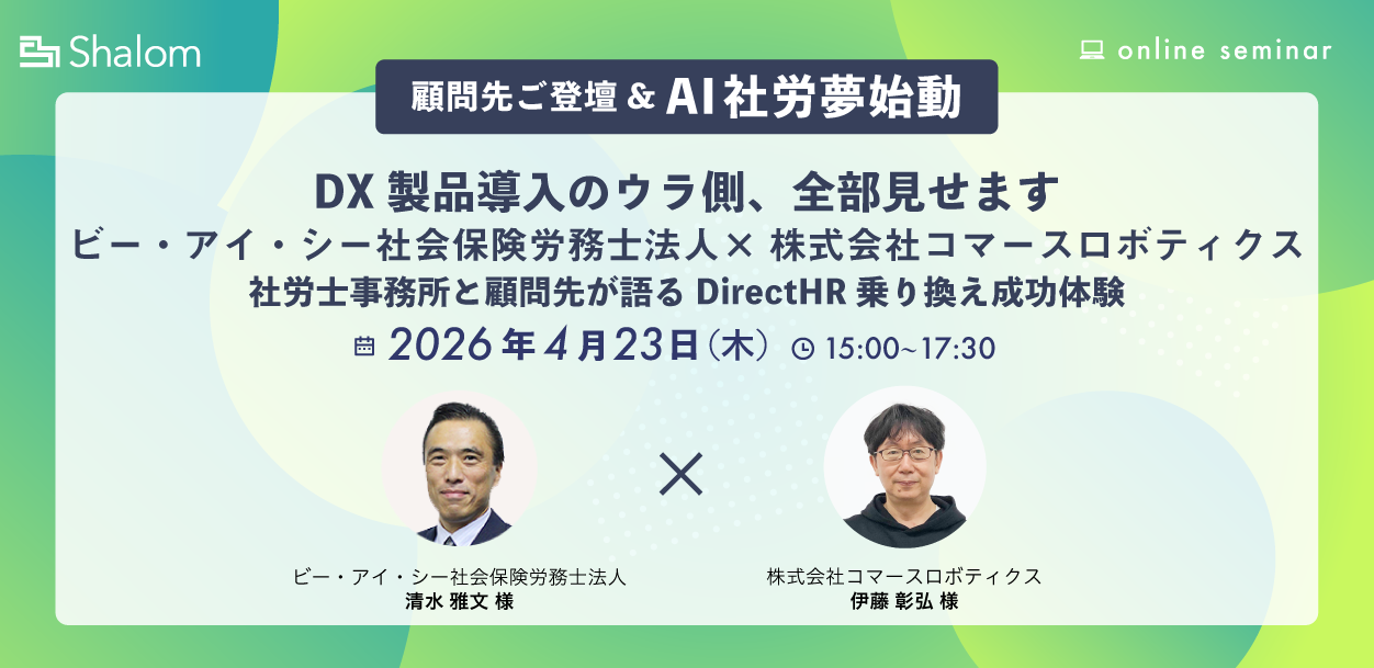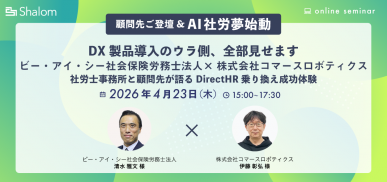 【顧問先ご登壇&AI社労夢始動】DX製品導入のウラ側、全部見せます ビー・アイ・シー社会保険労務⼠法⼈×株式会社コマースロボティクス 社労⼠事務所と顧問先が語るDirectHR乗り換え成功体験