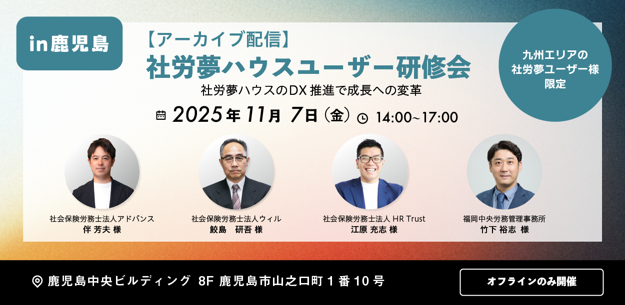 本セミナーでは、基調講演にカゴメ株式会社 小森様に、カゴメ株式会社の労務DXと現在進めている産休・育休制度の取り組み事例をご紹介いただきます。また社会保険労務士法人 堀下&パートナーズの堀下先生には、ほぼ100%の顧問先でネットde顧問をご活用いただいている理由と展開方法を具体的に教えていただきます。なぜ全国800を超える社労士事務所で「社労夢ハウス」を導入いただいているのか、また「社労夢ハウスDXサイト」など社労夢ハウスネットワーク構想により、「社労夢ハウス」導入の社労士事務所はどのようなビジネス展開が可能になるのか、今後の事務所戦略を考えていただくための必見セミナーです。ぜひご視聴ください。