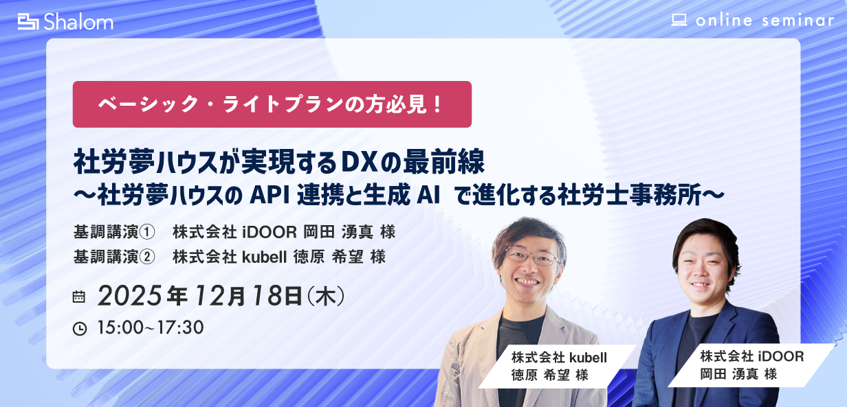 (受付終了)社労夢が選ばれる理由 顧問先企業とのつながりで業務効率アップ 成功事例・社会保険労務士法人三交会 武久 亮介 先生 「ベーシック・ライトプランユーザー必見!!ネットde顧問の始め方」